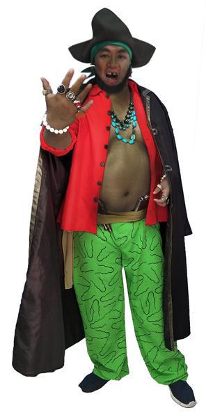皮膚和頭髮顏色都是黑色,嘴裡有掉幾顆牙齒,是個粗獷的中年男子。而且要在發出笑聲時,總是會先說「賊」一個字。